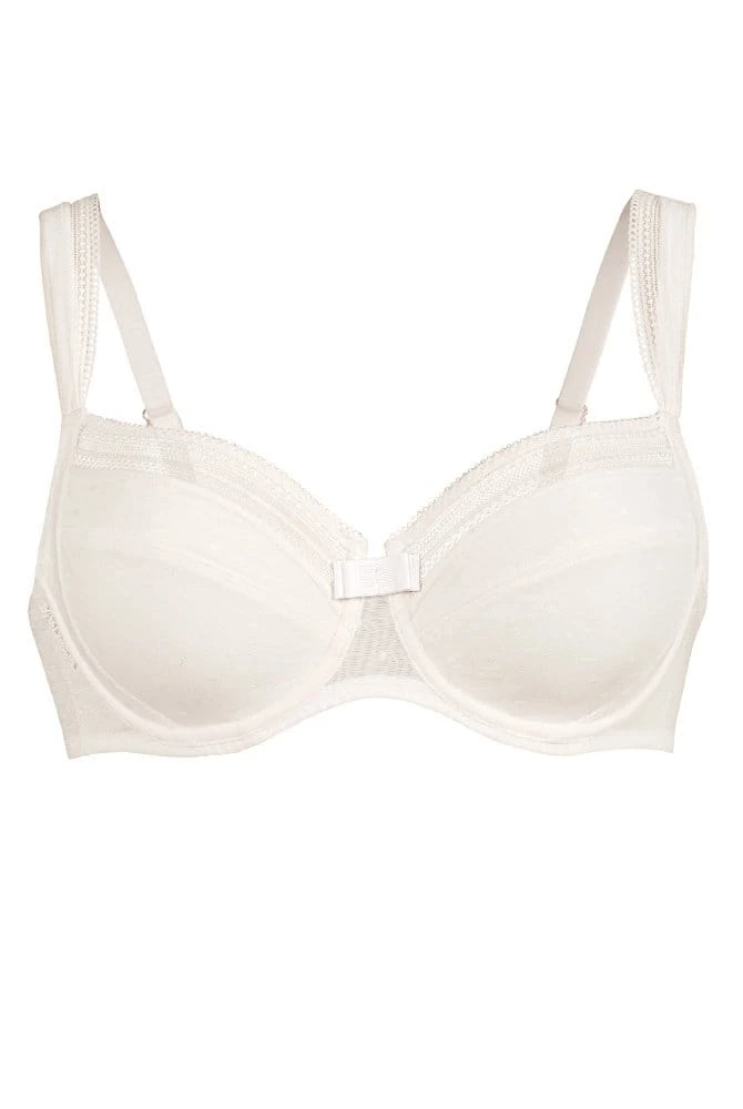 Verspielte Leichtigkeit mit französischem Flair: Emily mixt zarten Point d’Esprit-Tüll und filigrane Spitze zu einem wunderschön femininem Design, in dem wir Frauen uns gern sehen. Für einen echten Blickfang sorgt der Bügel-BH Emily mit feiner Spitzenborte und hübscher Schleife im Dekolleté. Die Cups aus feinem Punktetüll sind mit weicher, kaschierender Mikrofaser-Charmeuse unterlegt und bieten perfekten Halt und sicheren Sitz.