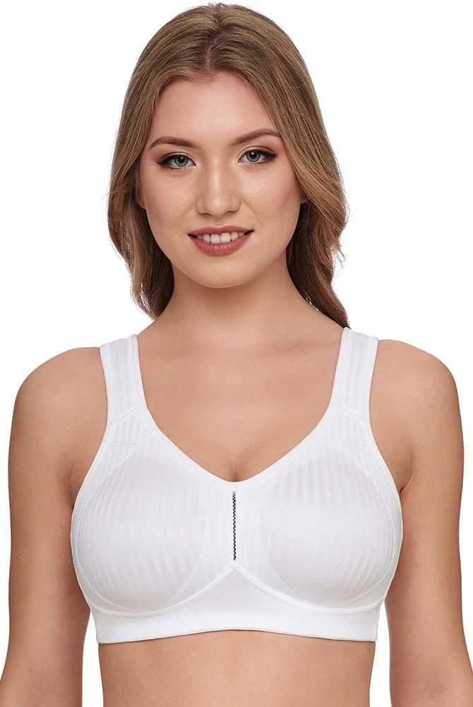In vielen erfrischenden Farben, klassisch geschnitten, präsentiert sich der Susa-BH Cremona. Der bügellose BH mit seiner eleganten, zart glänzenden Streifenoptik ist ein modisches Highlight. BH Cremona ist speziell für Frauen mit höchsten Ansprüchen an Halt und Sicherheit entworfen. Die hochfunktionelle Schnittführung garantiert auch ohne Bügel eine stützende Wirkung bis Cup I. Unwattierte, vorgeformte Cups ohne Naht im Brustbereich, sowie seitliche Stützblenden gewährleisten zusätzlichen Halt und einen perfekten Tragekomfort. Breite, leicht gepolsterte Entlastungsträger verhindern ein Einschneiden und ergänzen die hervorragenden Trageeigenschaften. Die kleine Ziernaht im vorderen Bereich zwischen den weichen, glatten Cups sorgen für Liebe zum Detail und einen verführerischen Effekt.