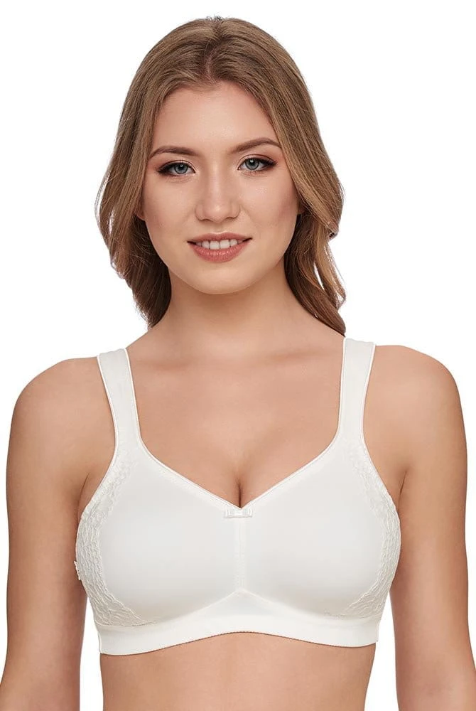 Unser bügelloser BH London von SUSA überzeugt mit besonderer Schnittführung und wunderschöner Verzierung. Die weichen, gemoldeten Minimizer Cups reduzieren Ihre Brust optisch durch eine raffinierte Schnittführung um eine Cup-Grösse und bieten perfekten Halt und ausgezeichneten Tragekomfort. Die schmückenden Spitzenstreifen an den Außenseiten beider Cups geben dem zeitlosen BH einen dezenten, weiblichen Chic. Eine funktionale Schnittführung garantiert eine stützende Wirkung des bügellosen BHs, besonders für große Größen. Eine optimale Entlastung der Schultern bieten die breiten, verstellbaren Komfortträger, die zusätzlich ein Einschneiden verhindern. Ergänzt wird das angenehme Tragegefühl durch einen 2×3 Häkchenverschluss am Rücken, der es ermöglicht, die Grösse individuell auf das eigene Wohlbefinden anzupassen. Eine kleine Schleife in der vorderen Mitte als liebevolles Detail vervollständigt den wunderschönen, blickdichten Look.