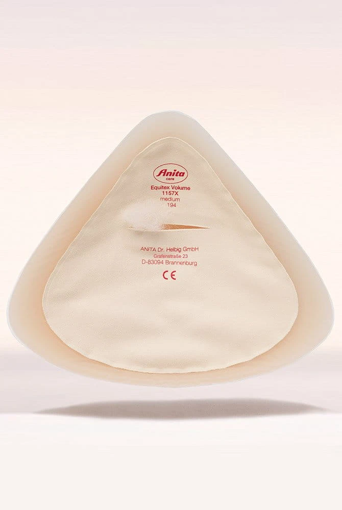 Die Multifunktionale Anita Equitex Volume Brustprothese, Art. 1157X, ist eine symmetrische Dreiecks-Schale mit verstärkter Mittendicke. Die hochwertige Silikon-Brustprothese ist beidseits zu verwenden. Wenn Sie Volumendefizite im Brustbereich haben, auch brusterhaltend operiert wurden, können Gewebedefizite entstehen. Um Ihnen die Sicherheit der perfekten Symmetrie im Brustbereich zu geben, ist eine Ausgleichsform aus weichem Silikon bestens geeignet.