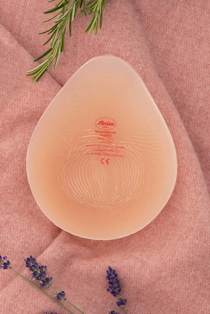 Nach einer brusterhaltenden Operation oder dem Wiederaufbau der Brust ist die operierte Brust oftmals vom Volumen her etwas kleiner als die gesunde Brustseite. Dieser Größenunterschied der Brust lässt sich sehr gut durch die anschmiegsame, sehr weiche SequiNature Brustprothese ausgleichen. Der kleine Größenunterschied im Brustbereich wird von SequiNature 1028X2 Brustprothese von Fa. Anita gut kaschiert, Ihre Büste ist mit der SequiNature 1028X2 genauso groß wie die gesunde Brust und das Dekolleté ist gleichmäßig.